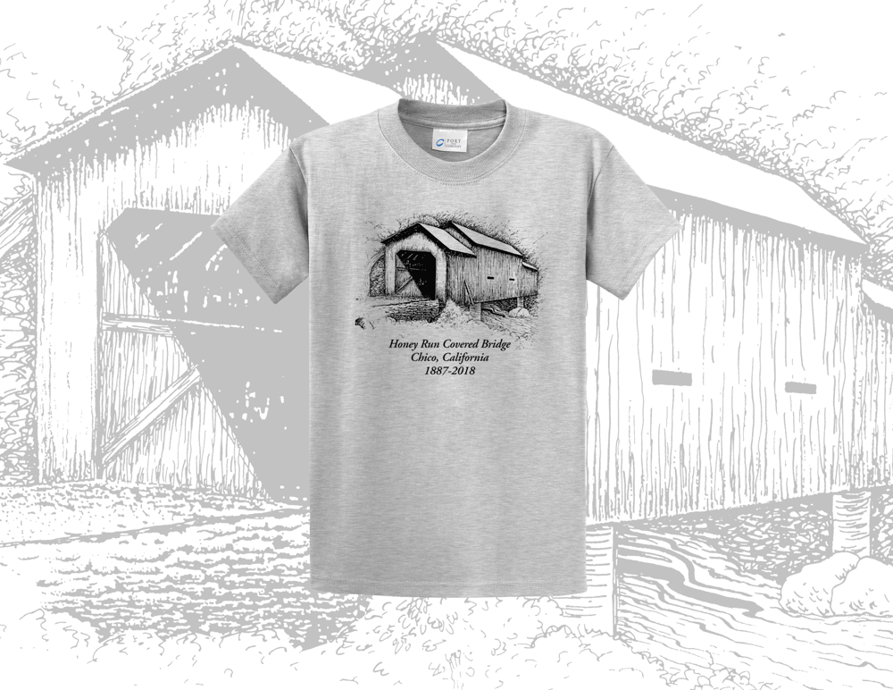We have been screen printing this design of the Honey Run Covered Bridge since the 1980’s.